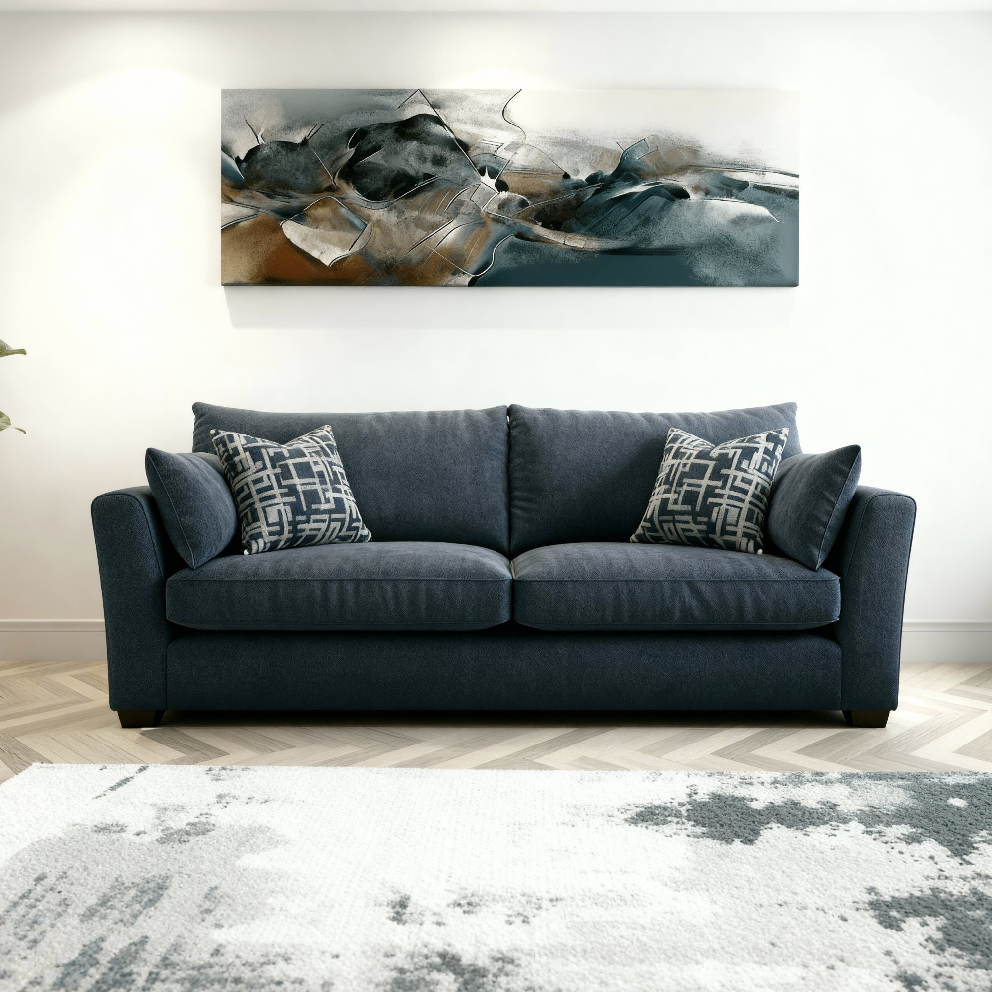Specification: Hardwood frame from sustainably managed forests 10 year frame guarantee Seat suspension: High tensile zig-zag with sprung front edge Care: Cushions must be plumped and turned regularly to maintain their performance and shape. Inclusive scatters: 100% duck feather Choose from a large range of durable fabrics including aqua clean easy care.